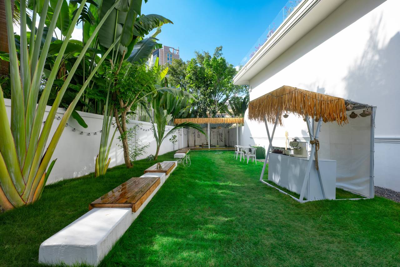 整体是ins风+傣式风情,纯白建筑搭配热带绿植,庭院、泳池、旋转楼梯,每个角落都超好拍,随手一拍都是大片📸 完全不用担心人挤人。