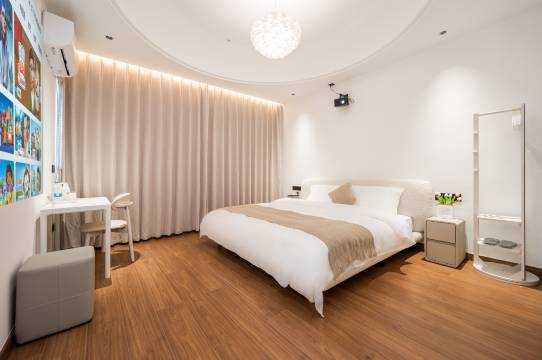 老板非常友善,看我抱小孩不方便,还帮忙把行李送上楼。酒店的环境和房间都非常干净整洁。设施齐全,床铺舒适。有洗烘一体机,一次性浴巾。酒店的位置非常便利,楼下有超市水果店等,不远处就是美食街,停车也很方便,价格实惠,性价比极高,让我获得了物超所值的住宿体验。