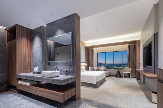 空间很大很明亮 超满意的一次入住!酒店位置便利,步行可达商圈和地铁。房间干净无异味,床品柔软好眠,设施齐全且新。前台服务热情周到,响应及时,细节满满,性价比超高,下次出行还选这里~