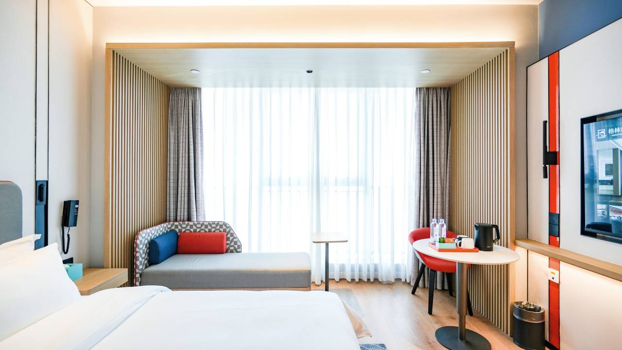 房间布置温馨舒适,不愧是连锁酒店品牌,设施新,停车场很大,早餐也算丰富,而且味道不错,最重要的是位置绝佳,就在航站楼对面,步行过去几分钟!