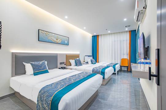 和朋友过来游玩,逛累就准备住一晚上第二天再返回,在平台看的这个酒店离日月贝很近就直接定了,在扬名广场吃完饭,慢慢散步就到了,房间干净整洁明亮,睡了一晚的好觉,前台的美女很热情,办理入住迅速,直接电梯上楼,推荐