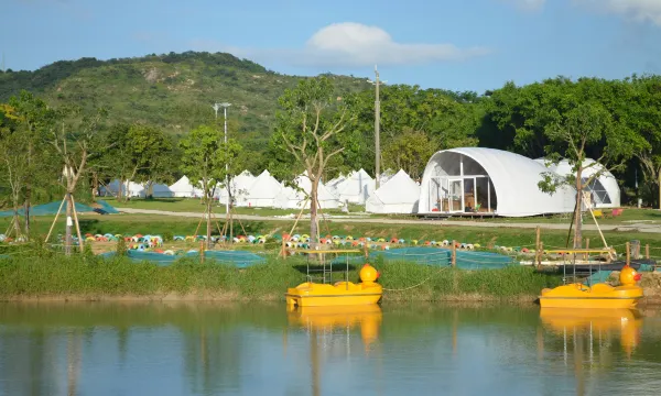 营地位于惠州市大亚湾区霞涌镇海岸公共浴场,占地面积100亩,是惠州配套较完善的海滨综合型营地。园区包括露营休闲有咖啡茶艺、篝火晚会、夜间氛围活动:亲子游乐包括亲子游船、萌宠乐园、越野卡丁车、海岸小火车观光、田园采摘、研学教育、户外活动、水上垂钓、无动力乐园、环岛快艇、绿道骑行:精致住宿有星空帐篷、贝壳屋、集装箱主题小院、自搭帐篷、天幕帐篷、露营桌椅:特色美食包括地方美食、实惠海鲜大餐、露天烧烤、野炊柴火饭、精致下午茶等等!