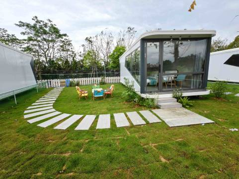 营地餐厅方面格海滨舫,营业面积达1200平方米,设有大堂和包间,能够容纳大规模用餐需求,提供了良好的餐饮服务。此外,营地还设有萌宠乐园、水上乐园、越野卡丁车区、采摘园、垂钓区、大草坪区、烧烤场和柴火灶区等,适合家庭聚会、团体出游和各种户外活动。住房环境很好,是一次不错的体验。