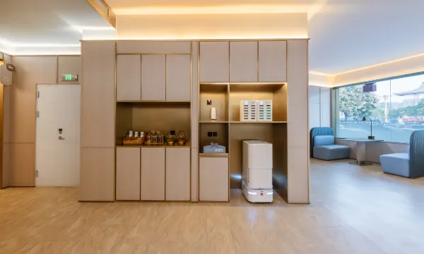 酒店位置好极了,房间很干净。前台服务特好。还有机器人送物,下次还会再来。