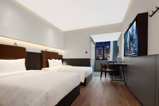 调整行程,住多了一天。不要被外观和“大堂”误导,房间还可以,性价比不错,楼下买个东西也方便,据说是网红打卡点。