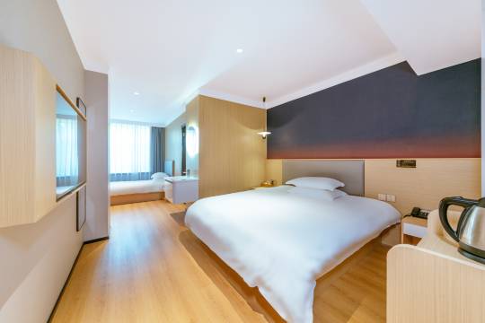 大床很软睡的很舒服。房间靠在小区也很安静。服务态度也挺满意的。
