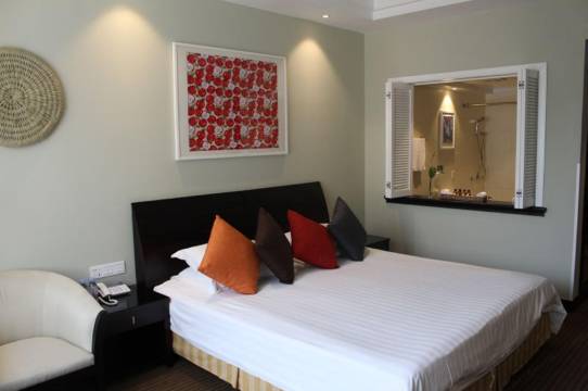 这家酒店开在东方绿舟门口,入住可享无限制进出,非常适合家庭亲子游。酒店虽然开业很久了,但是维护得不错,房间大,环境好,服务人员非常热情有礼。之前来过东方绿舟很多次,但是这次问酒店借了一辆山地车,40元/小时,才把东方绿舟各个角落走了一个遍,景色宜人,空气清新,非常满意,五星好评推荐。