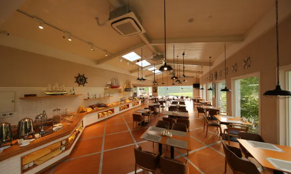 早餐非常丰富,假期客人比较多但工作人员都非常热情,大厅外还有儿童乐园,可以挖沙子等。
