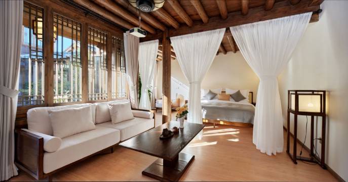 听雨小筑设计初心,以融合古镇风貌的土木结构传统新中式四合院建造。院内锦鲤戏水,花草茂盛。全屋家居采用胡桃木家居,实木家具,希尔顿同款床品,洲际同款洗护,美标、科勒卫浴,秒出热水。体现了主人对于客户体验的要求。院内共六间房,其中一间亲子房,一间双床房符合不同客人的需求。古戏台,停车场仅步行五分钟路程,全程接送行李,让您实现双脚自由。