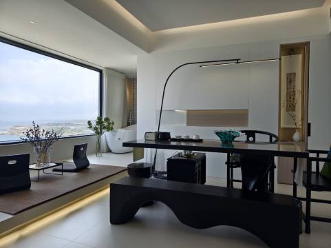 纯净的白色与大海的蓝色交织,营造出如梦似幻的氛围。沏一壶香茗,让茶香在海风中飘散;夜晚,通过投影,沉浸于精彩的电影世界。水与海的交融,身与心的放松,在这一刻,时间仿佛静止。