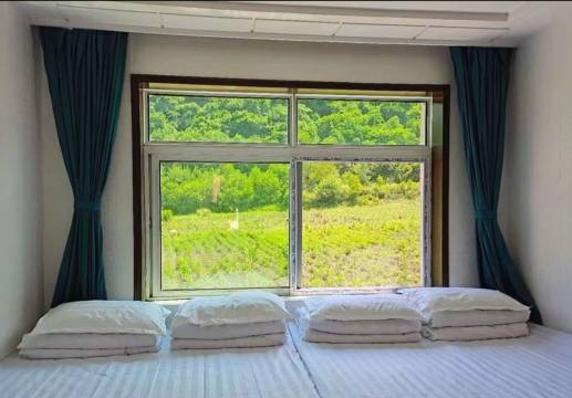 他家的温泉真是一绝,可以两个人一起泡,泡完身上滑溜溜的。环境非常幽静,周围都是山,林子,小河,空气特别好,好久没吃到这么地道的绿色农产品了,是市里吃不到的味,可以吃到林蛙,河鱼,山野菜。住在这感觉很放松,很舒服。