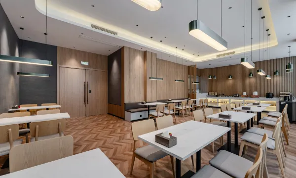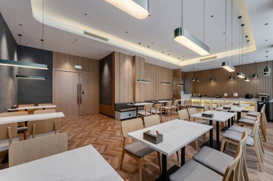 客房干净整洁,床被干爽舒适。室内所有软装都给人赏心悦目之感,很喜欢。酒店中式早餐品种够多,餐厅环境也相当不错。前台工作人员很热情,餐厅服务员也很友好。酒店门口就有公交车站,出行很方便。