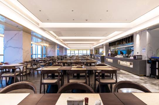 酒店早餐种类丰富,中西式菜品搭配均衡,食材新鲜可口,能快速补充能量开启一天