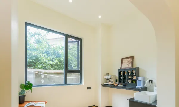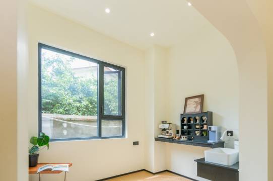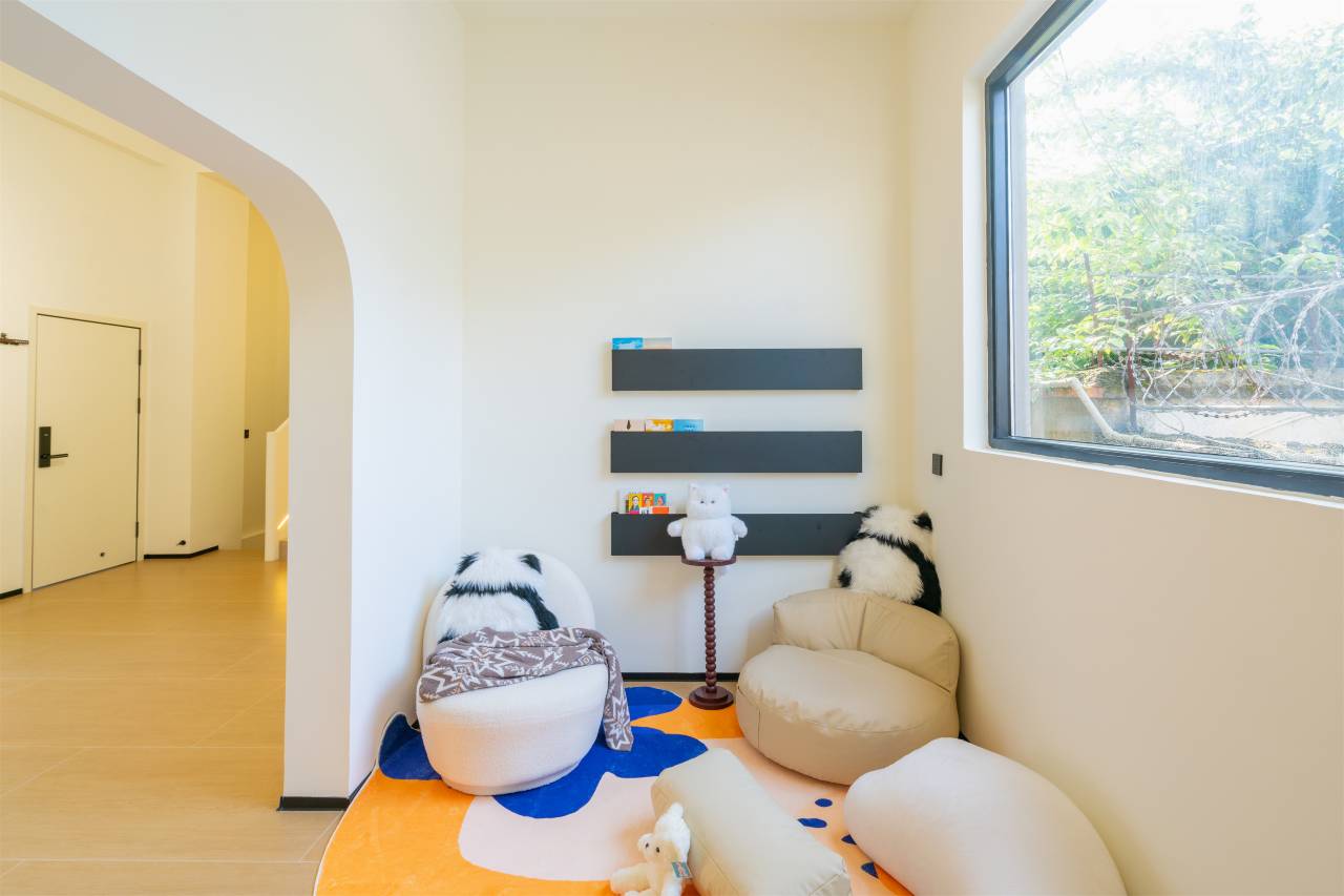 这家民宿空间超大,明亮宽敞设施很新,窗外有山有云,超级漂亮,能坐着看一下午。