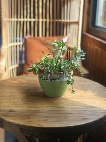 1.环境温馨。院落被绿植温柔包裹,藤蔓攀过木栅栏,与角落的绣球花相映成趣。多肉植物与陶罐组合成野趣小品,短腿猫咪花花慵懒可爱,衬得庭院更显静谧。而夜晚暖黄的串灯点亮后,又添几分童话感。