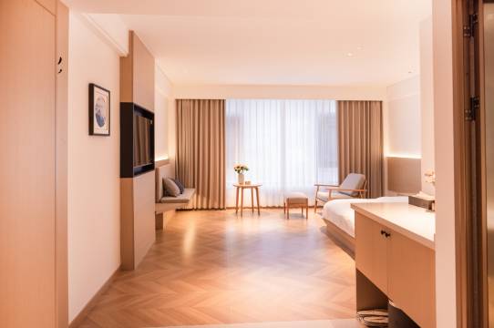 [设施服务]: 酒店设有;晋华,精美大床房、别有风味,大床房、魅力,典雅客房酒店以满足不同客人的需求,每个客房: 配有空调、电视、独立卫生间和无线网络等,提供宾客一个舒适的住宿环境,我们的客房设计充满时尚感,设施齐全包括高品质的床品、无论你是商务出行还是休闲度假,都能在这里找到心仪的住宿环境。