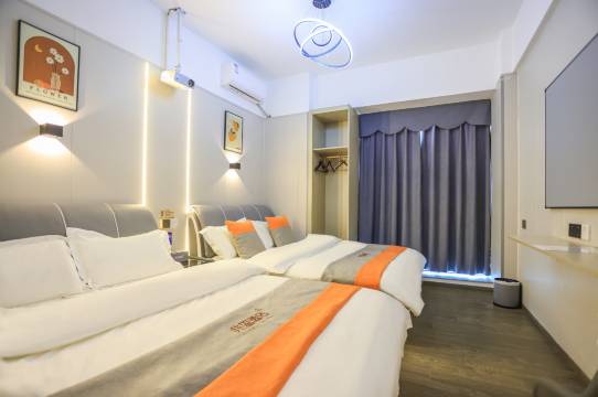 客房配套完善,楼层高,采光和通风都很好。位置也很好找,就在商场楼上,购物和餐食都很方便。过来考试和家人住了2天,前台小哥专业热情,还免费帮我升了房型。对了,第二天我们在楼下逛有很多美食,从商场走过来就是地铁站,大概3分钟,很近很方便。晚上附近还有夜市,最喜欢这种有人间烟火的地方,以后没事就过来~