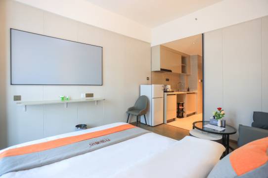 前台接待人员专业热情。房间楼层高采光,通风都不错,配套设施齐全,洗衣机冰箱投影仪。楼下交通便利,地铁旺村站还有很多奶茶店和美食,超级推荐