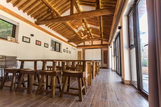 民宿位于北京市黄土贵村,风景优美,在保留院落原貌的基础上对院落和房间进行改造。民宿共9个院落,还有私塾可以承接小型会议,酒店的每个院落层次错落,视野开阔,老北京四合院的风貌保存完整,青堂瓦舍清新雅致自然纯朴,院子里有休闲赏景的桌椅露台,有菜地,有乡村情趣景致。村子饮用水是机井深挖的地下山泉水,村里常见身体健康的老者,三五成群在院墙下聊天休闲。每个院落配备统一标准的高品质洗浴设施,七间房餐厅有土菜精做的特色美味。黄土贵,穿越雾霾高度的山水环抱,足以让您享受品质如一的宁静清新。