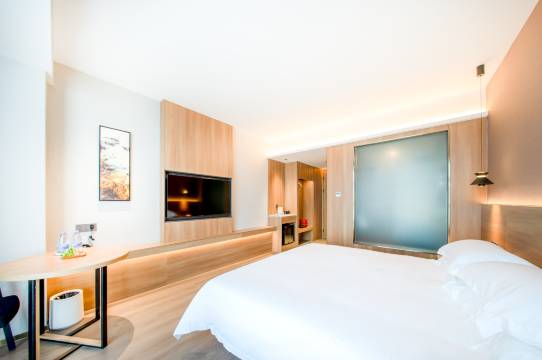 房间非常宽敞明亮,很精致舒适,房间无线网也很流畅,设备很齐全,配备了洗衣房有阿姨帮忙洗衣服太贴心了,大屏电视,出差的疲惫再看到房间的一刹那间烟消云散,大堂有机器人 。晚上跟前台找个指甲剪,后来前台小姐姐直接送我一个新的。太体贴啦,还有酒店还提供夜宵了,让我们这些外地出差的人感受到了家的味道。强烈推荐