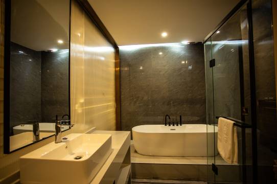 房间很干净 设施齐全 服务态度好 环境优美 房间里是人工智能家居用品 可以声控 第二天2点才要求退房间真的非常不错
