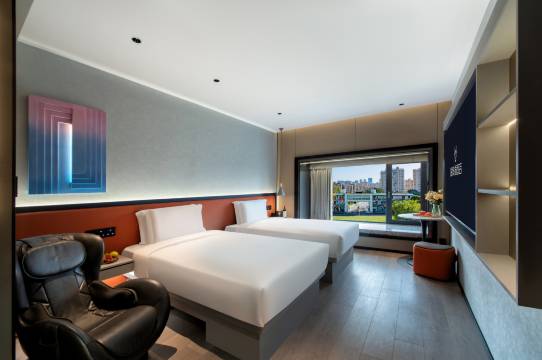 房间设施较同一价位的用心的多。有热毛巾架,空调出风口有挂衣钩。小度智能控制。服务态度也很好,有点问题会耐心解决。打扫的也干净。早餐也蛮丰富,现煮的面和馄饨蛮好吃。但是不要住在电梯旁。。。电梯运行会很影响。确实是没睡好。窗帘因为是智能控制,没办法到底,所以早上的阳光透进来也是比较亮的。