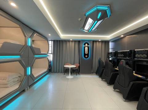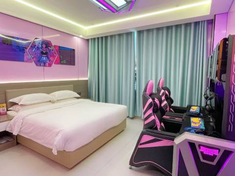 本酒店为,酒店管理,住宿服务,餐饮服务,室内娱乐服务为一体的。酒店装修以电竞风元素为主,宽敞舒适,体现了现代酒店的豪华与别致,让您充分领略和感受到酒店的文化氛围。酒店一贯秉持"顾客至上。满足玩家和客户需求,超越客户期待"的理念,为客户提供最完善、最完美的服务,始终作为酒店追求的一项重要目标。 酒店以"娱乐主题、清洁、服务、品质、价值"为经营宗旨,不断追求卓越,无论休闲、娱乐、酒店配套娱乐设施齐全,体验感十足,是您在库车市休闲、娱乐体验、朋友聚会的优选之地。