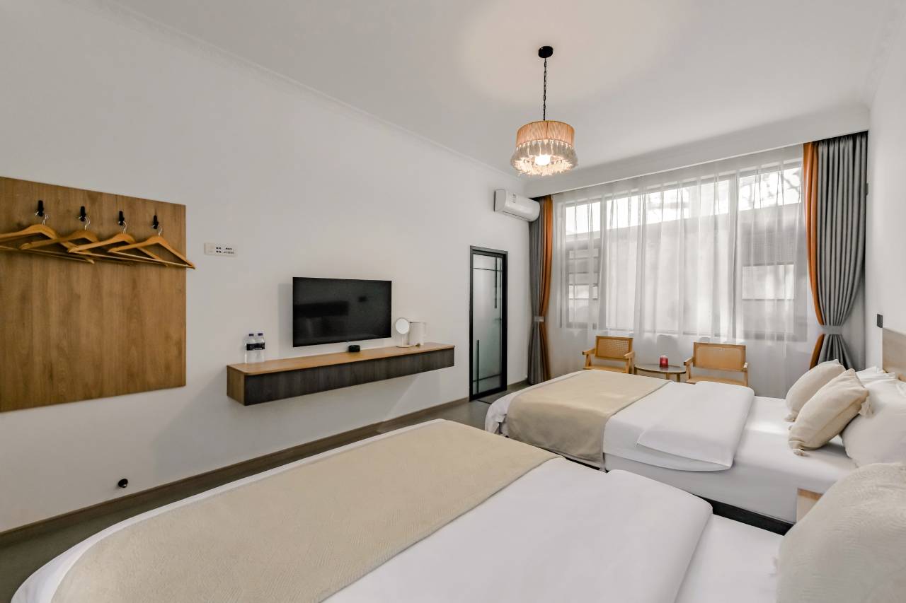 本店每个房型都有做除味以及除甲醛,更有设置有大床房、双床房、家庭房套房等多种房型供您挑选。门店也有提供行李寄存服务,且提供电动车租赁及叫车服务。每间房均配备空调,吹风机,环保洗漱用品,24小时热水,全屋WIFI覆盖,简单舒适的环境,干净卫生,性价比高,是您的理想休息住宿,让您在旅途中感受到宾至如归的舒适。