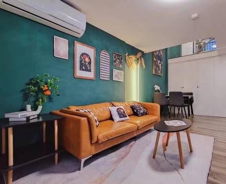 设施:两人住loft【比两个人住两间宾馆便宜】两间卧室,两个卫生间,客厅,厨房,洗衣机。冰箱,燃气灶,电饭锅,厨具,调料……一应俱全。卫生用品很全;三个空调安静且卫生;沙发、餐桌、茶几……很有家的感觉。