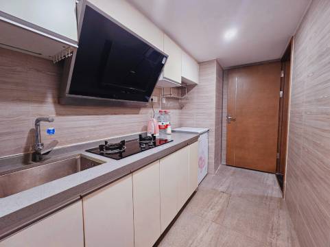 很舒适的公寓酒店房,房间干净整洁,我们一行五人订的一套三人间一套两人间,各睡各的房间,各不打扰,这点很好,下次来武汉还会住这里