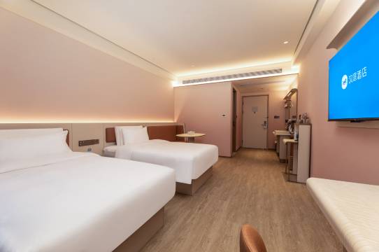 第一次住这家店,给人的感觉很好,前台很热情,进门就打招呼,房间也很干净,整体感觉非常好,阿姨打扫的很用心,阿姨也很热情,早餐很好,特别是早上的鱼汤面,现熬的鱼汤很好喝,门口的停车位很多,很方便,房间晚上很隔音,睡觉很安静。总体非常满意,好评