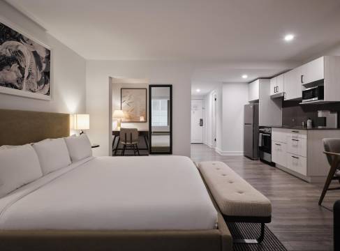 有 152 间特色装修的客房提供备有大冰箱和烤箱的厨房;您定能在旅途中找到家的舒适。带有数码频道的 50 英寸平板电视可满足您的娱乐需求;同时提供免费无线网络,方便您与朋友保持联系。便利设施包括微波炉和电热水壶;而且按要求提供提供客房服务。