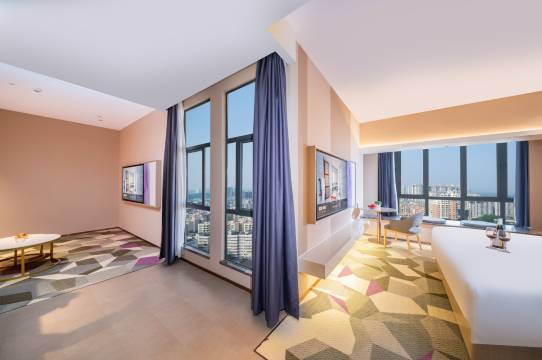 酒店位于台山东区繁华新商圈,台山市昌大昌广场商圈,台山东区新中心满足你的衣食住行,毗邻活水公园、合水公园河边碧道,台山华侨文化博物馆、金星湖湿地公园,距台城高速2分钟车程,距台山高铁站10分钟车程。交通环境四通八达,紧依核心娱乐商圈,围绕周边温泉旅游资源,侨乡特色人文文化底蕴浓厚。酒店享有完善的商旅服务、自助洗衣房、自助早餐厅,健身房设备齐全,房间提供定制床垫、自然之音睡眠音乐、智能化客控系统、超大屏幕液晶数字电视,酒店配套休闲咖啡吧,契合商旅人群和中产家庭出行的品质需求,是您商旅、洽谈、会友的好去处。