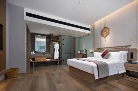 本店是艺龙酒店科技入驻酒管-珀林酒管旗下中高档臻品酒店。取自编织的纹理、自然的木材、亲肤的天然纤维。以自然、健康、精致的态度,打造一个自然而然,有情感,有互动的适度旅居体验。秉持“聆听自然.回归初心”的理念,既传承了传统中式风格的精髓,又融入了当代人们对东方美的情话,为每一位顾客提供高品质的入住感受。酒店大堂设有优雅的休息区,中央空调、极速WIFI已覆盖全酒店,配有便捷停车场以及会员早餐自助餐厅;酒店房型种类丰富,采光通风效果良好,客房基本设备齐全,设有洗衣房、健身房;24小时恒温恒压热水,可提供商务、情侣、亲子出游的多元化入住需求。酒店全方位提升您的入住感受,服务周到、热情,是商旅人士的上佳居所。