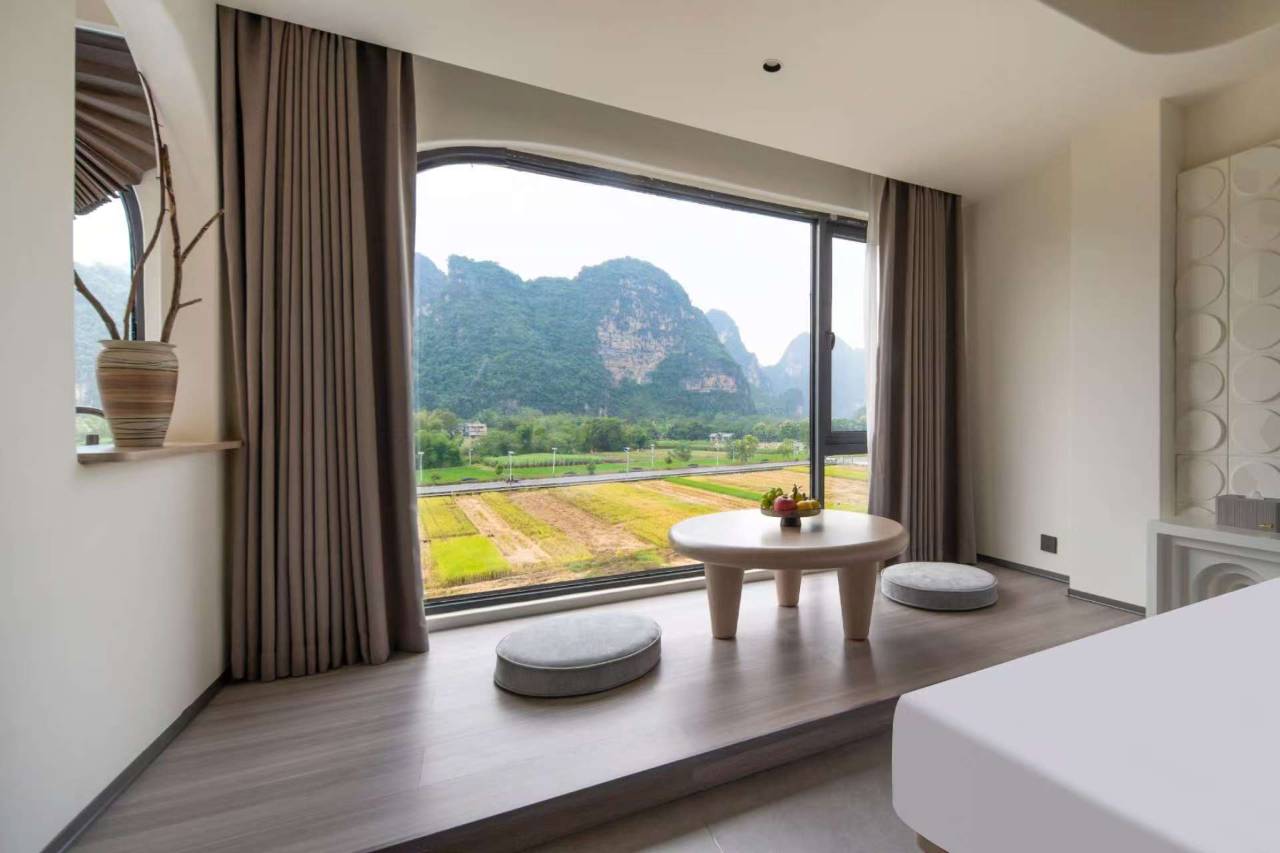很漂亮的房间,270度全景!非常敞亮非常干净,在山水之间拉开窗帘就是麦田治愈色~太nice啦,尤其是酒店小姑娘服务超棒像自家妹妹一样贴心哈哈哈🤣骑电动车托着我到处玩,弥补了我独自出行没人帮拍照的遗憾~小妹妹拍照还巨好看!刚好我在的这几天不忙酒店会自制夜宵小点心一起吃~真的宾至如归!哈哈 看图