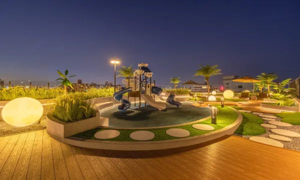 附近有城市沙滩可以玩。性价比很不错,1楼还有免费的自助餐,下午茶以及夜宵门口停车也非常方便,另外他们家房间智能投影控制。还有免费的自助洗衣房
