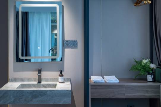 前台服务专业高效,入住流程顺畅。房间宽敞明亮,装修时尚简洁,床垫软硬适中,确保了高质量的睡眠。隔音效果很好,虽处繁华地段却十分安静。浴室干净整洁,水压充足,热水来得很快。