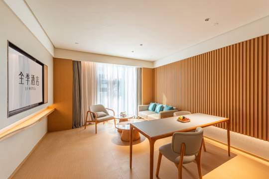 全季4.0版本在外观和内部设计方面更加简约、精致,注重细节和品质。酒店大堂设计更加宽敞、明亮,同时融入了智能科技元素,让客户可以更加便捷地进行自助服务操作。此外,全季4.0还推出了“客听”空间,这是一个复合式功能的“城市第三空间”,提供书籍、饮品和生活好物等,不仅为酒店住客提供了一个舒适的休闲场所,也向附近的人们开放,成为了一个社交和交流的平台。