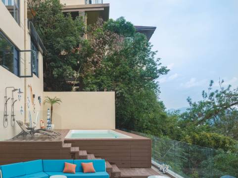 无敌湖景,据说这是整座岛位置最高的一栋,眺望湖景太美了。泳池也是加温的,大冬天一边游泳一边欣赏湖景,体验感满分。