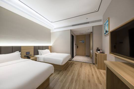 性价比非常高,订了大床房给我们升级了家庭房,房间面积很大,全屋智能的,很新,环境很好,没有气味。对面就是万达广场,公交车站也在不远处出行十分方便,早餐也好吃,应该是这个价格能住的最好的酒店啦,下次来临港玩还会预定。