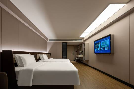 酒店设施较新 装修风格现代、 配备智能家居系统 及实用设备,房问整 体干净整洁、 无异味、 床品舒适、客房设有 干湿分离卫生间。客房清洁度高。 地板光洁、浴室无积水、 一尘不 染。部分房间还配有感应灯、大尺寸电视等细节 提升体验。