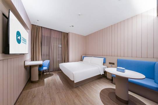 大床房空间挺大的,设备都有,房间很干净很整洁🥰前台的姐姐也特别好,时出行不二之选啦,而且这边离地铁口也很近,24小时有送机服务,很适合凌晨或者特别早的飞机✈️总的来说卫生环境服务都特别好!下次还来杭州的话如果在萧山这边还会考虑住这里啦!