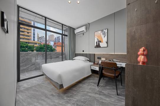 在网上看评论订的,没到之前还有点担心,入住之后发现房间真不错,房间很新干净卫生无异味,因为预定之前询问了是否有停车场,这个价位在广州能找到免费停车的酒店实属难得,美中不足的话可能就是酒店楼层不太高,因为我个人更喜欢住高楼层,不过休息过程中也是完全没影响。值得一提就是床虽不大但睡得真舒适,装修风格也是别具一格,从细节方面能感觉到店家是用心了!晚上和朋友发现周边附近有很多美食街,对于我这种喜欢跟朋友探店觅食的吃货来说简直是一大福音。最后,要为前台的帅哥美女们点赞,有出行问题她们都会耐心指引解答,房间内的问题也都及时回应,我很重视酒店的服务,一般的酒店我很少评论,但这家非常推荐,强烈推荐。