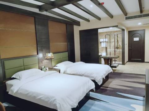 酒店环境高端大气,服务热情到位,设施独特别具风格,具有汉唐风格,之前看网上评论说卫生间没门我还担心,入住之后发现装了一个遮挡帘,看上去跟房间挺搭的,房间卫生整洁干净,性价比超高,会介绍朋友们来的!