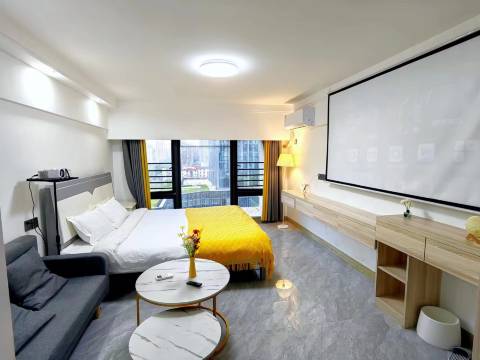 房间干净卫生,老板的服务态度很好,一次性用品齐全并且都是免费的,价格实惠,投影清晰,睡的床也很舒服,适合情侣居住,吃喝玩乐方便,离万达很近,走路6分钟,下次还来选择这家民宿