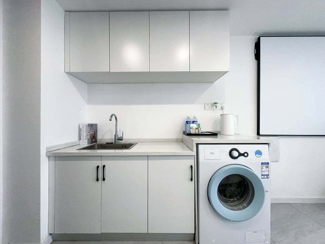 设施:复式公寓确实适合一家大小居住,基本使用设施包括冰箱,洗衣机,投影仪都有!