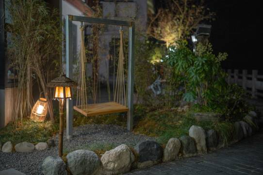 房间装修得很漂亮,临溪的风景很美,低头一看就心情好;外面的装修也有巧思。
