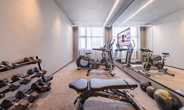 设施完善 :房间明亮,隔音效果很好。健身室器械齐全,洗衣房服务细致。还有免费停车。