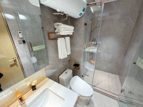位置好得没话说,离港珠澳口岸近,去香港或者澳门机场特方便。旁边有mall吃喝轻松搞定,不过不要太晚哦,晚上8点后好像有些店收档了。这边挺安静,没有那些乱七八糟的噪音,能让我安安静静地休息,毕竟隔天要早起赶飞机。房间干净整洁,设施该有的都有,电热水器很给力,住着很舒服。前台的工作人员特别热情,有啥问题都能很快帮我解决。到达哪天,店里去团建了,前台中途还特意赶回来帮我处理问题,怪不好意思的。晚上打车去拱北吃饭,滴滴司机说我订的价格挺实惠,还说这里性价比超高。暗喜。