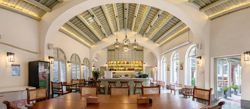 订了两间房,都在同一个院子里,分别在一楼和二楼。酒店坐落于古村内,南洋风格,有很多个院子,每个院子有4间房,非常适合一家老小或朋友一起住。酒店门前是荷花塘,远处是大片的稻田和果树,我们随着绿道围绕稻田走了一圈,心旷神怡。老板人热情,等待入住的时候送来了两杯咖啡和当地产的番石榴,还介绍了附近有哪些吃喝玩乐。酒店的早餐不错,有面有粥,午晚餐可以去附近的农庄解决,走路不到5分钟。港头古村值得再来!!